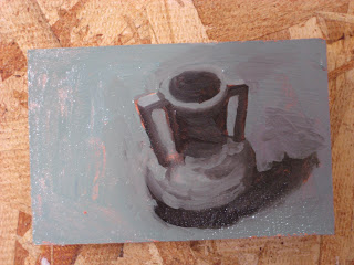 A while back I sent two samples into the art-o-mat project (artomat.org) and soon received word that my work was accepted (thanks, Carol!). This has been very exciting because I have long loved that project but it's only recently that I realized I could be part of it. The most intense part has been getting the initial 50 (yes, fifty) pieces together. In the last couple of weeks, I've done 20. I'll post them here since I think they counts as my painting-a-day or at least painting-as-often-as possible goal. So, here goes: Oops, looks like they posted above and some of them are on their side....I'm still trying to grope my way around this thing.